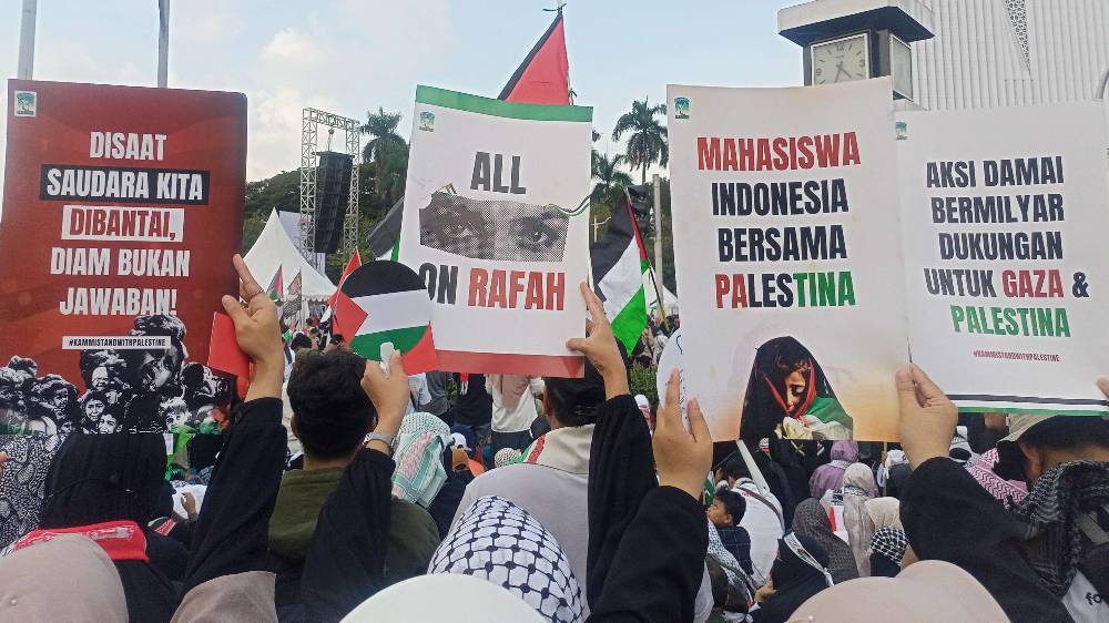 Aksi damai yang berlangsung tertib ini menjadi cerminan dukungan kuat masyarakat Indonesia terhadap perjuangan kemerdekaan Palestina. (NHX)